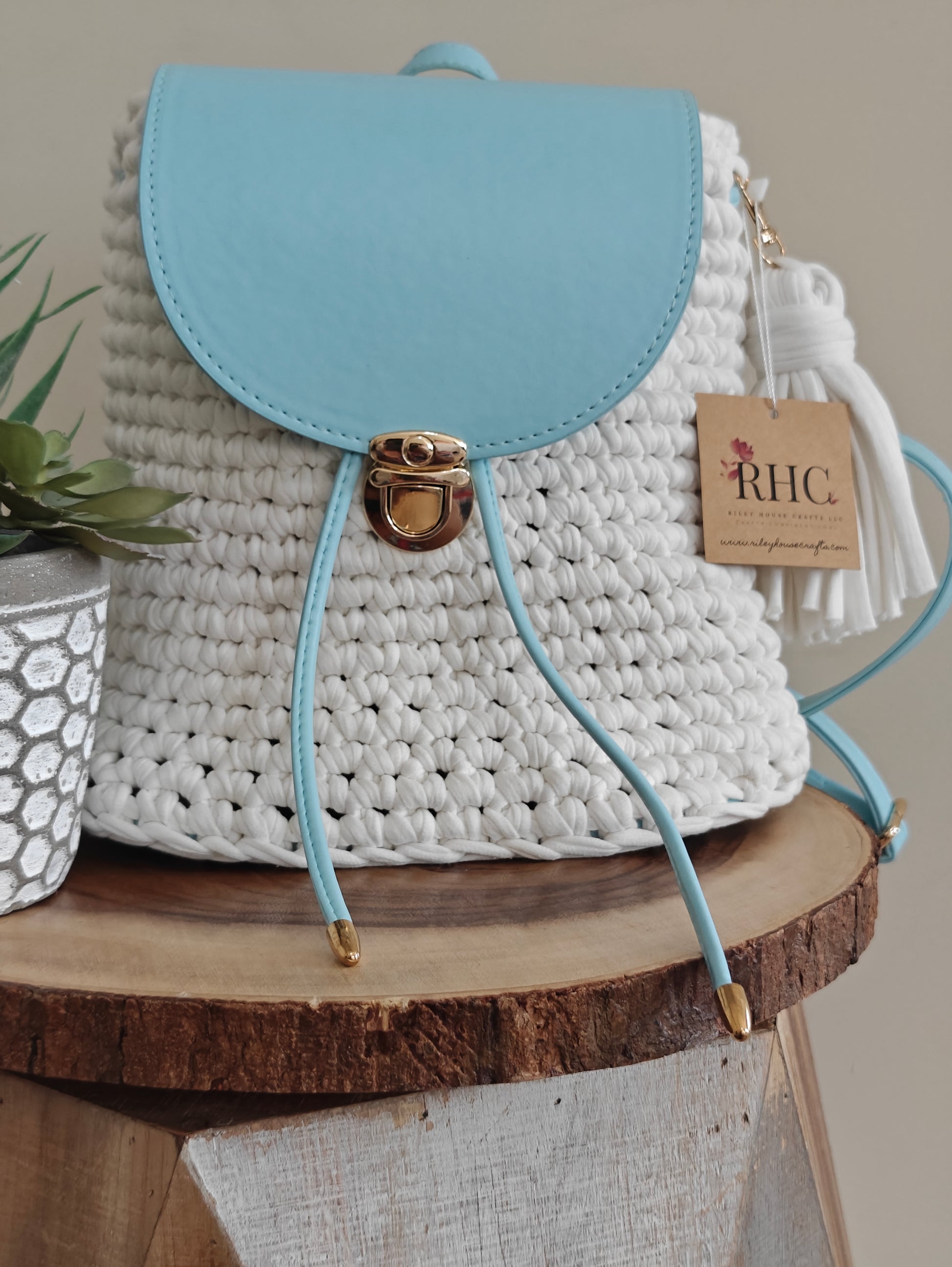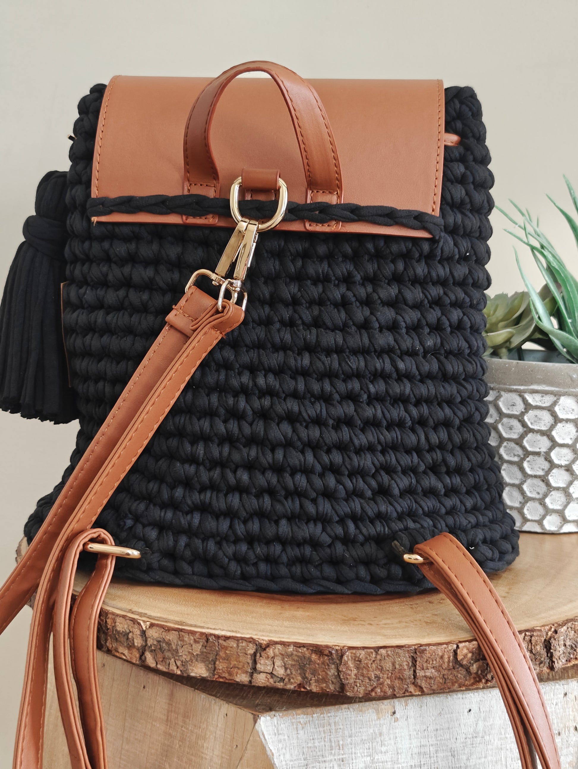 Introducing the Cara Crochet Backpack, a stylish and versatile accessory for any wardrobe. Available in multiple color options, this backpack features a beautifully hand-crocheted body complemented by a durable leather base, flap, and straps. Perfect for daily use or a special outing, the Cara Crochet Backpack combines functionality with chic design.